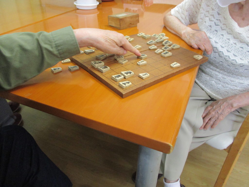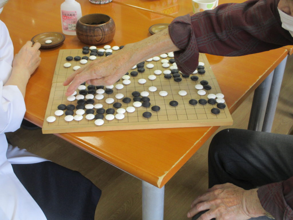 職員と囲碁を楽しむS様。