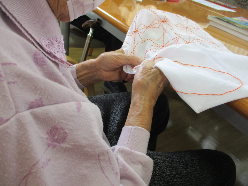 和裁の得意なY様。刺し子で雑巾を製作中。