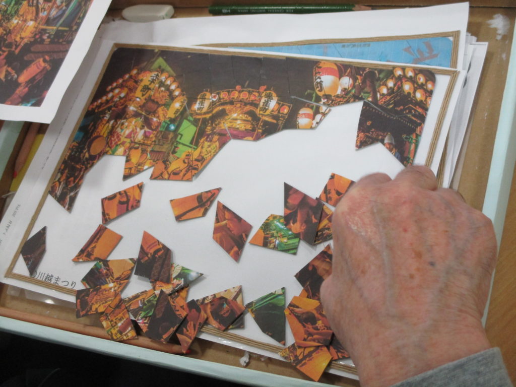 職員オリジナルのジグソーパズルで回想法をしています。