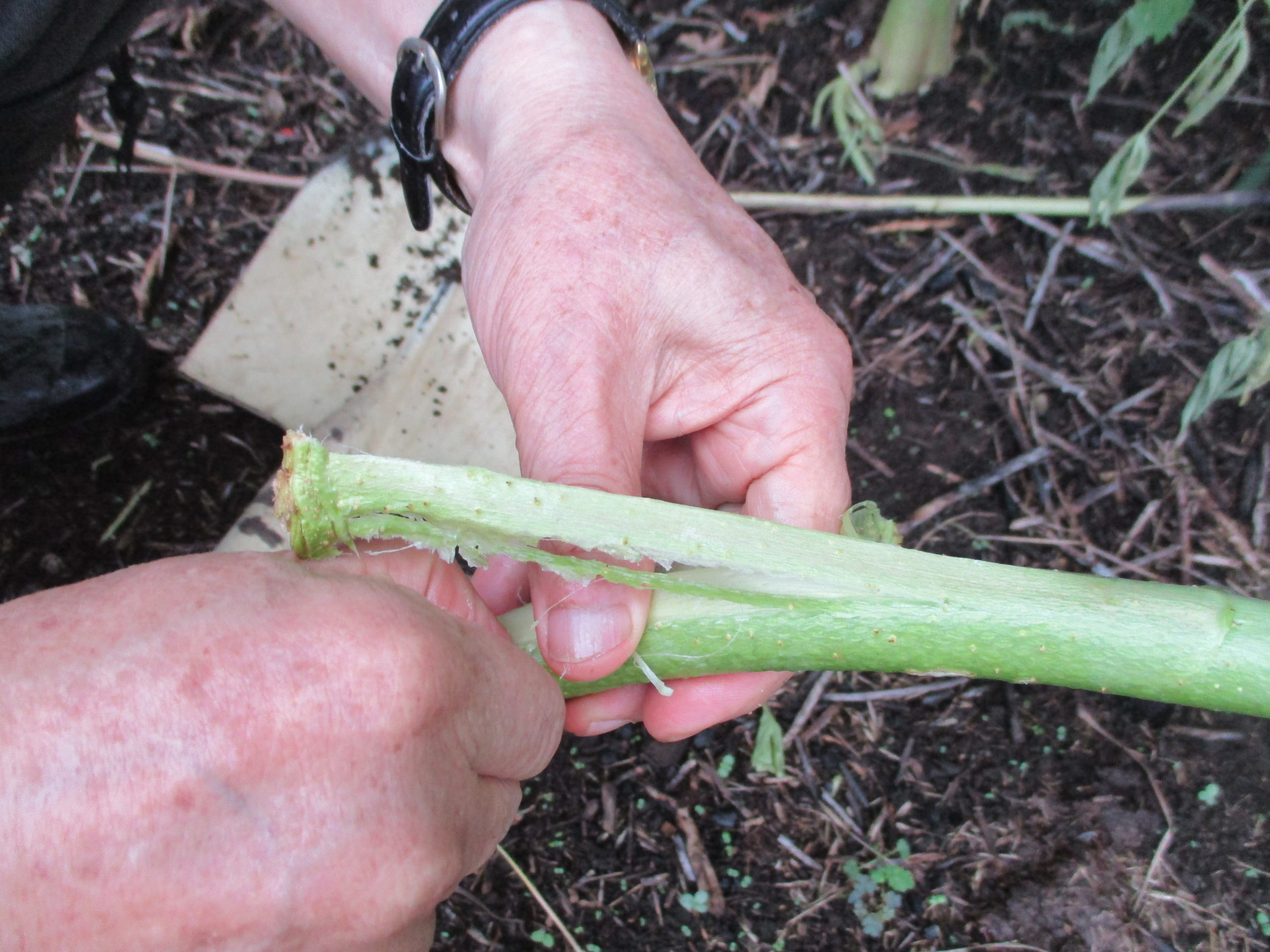 ケナフの皮をむき、中の繊維をほぐすと紐になるそうです。