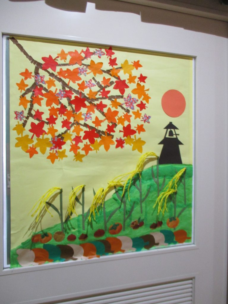 デイケアの壁画制作では秋を先取りし、紅葉の壁画を展示しました♪