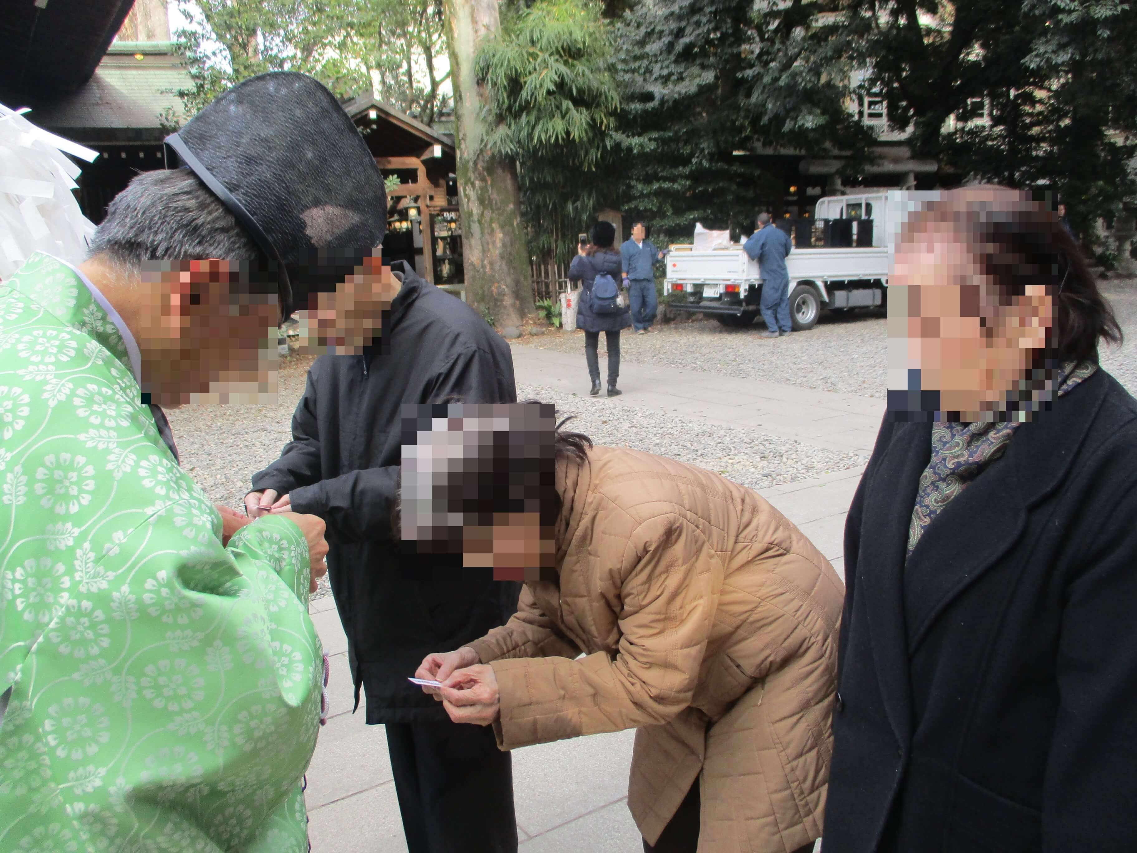 神主さんに御願いすると快くお払いをして頂きました。皆様、真剣な面持ちです。