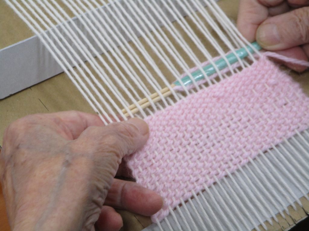 昨年冬ごろから制作していたマフラーも完成し、みいちゃんにプレゼントしました。このマフラーは段ボール編み機を使用して編んでいただきました。網目が細かくて暖かそうですね。