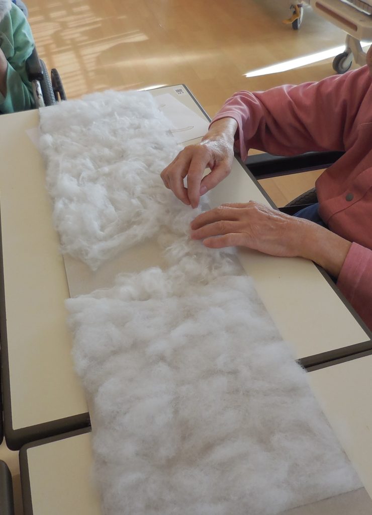 ボール紙に「綿」を貼っていきます。