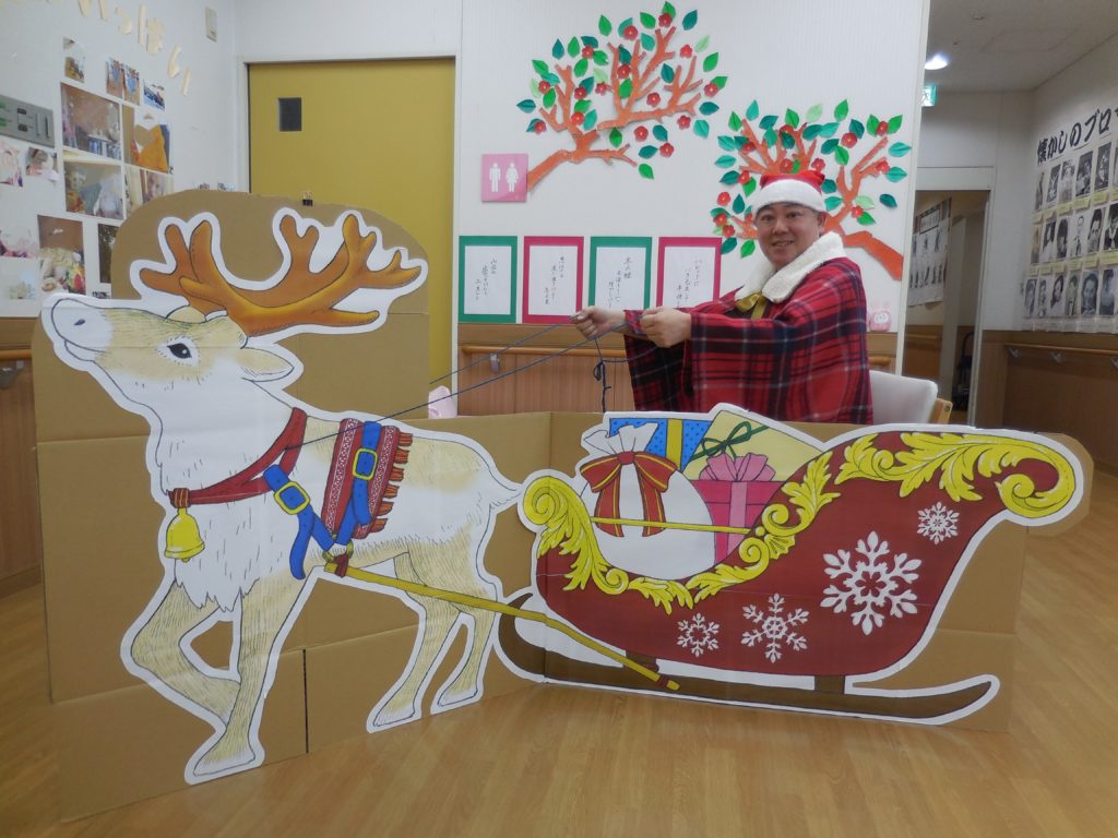 クリスマスということで、患者さまがサンタに扮して写真を撮れるよう、パネルを作成しました。