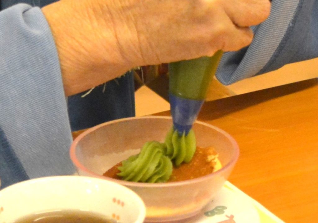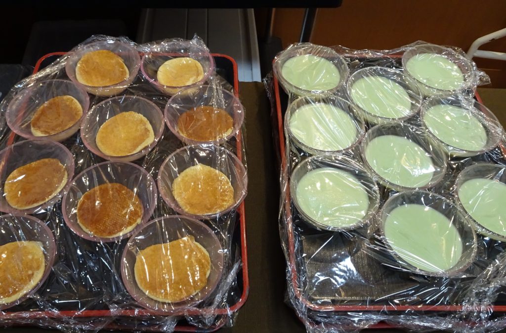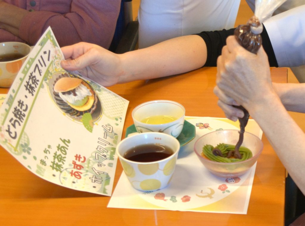 「抹茶クリームどら焼き」と「抹茶プリン(飲み込みに不安がある方)」。