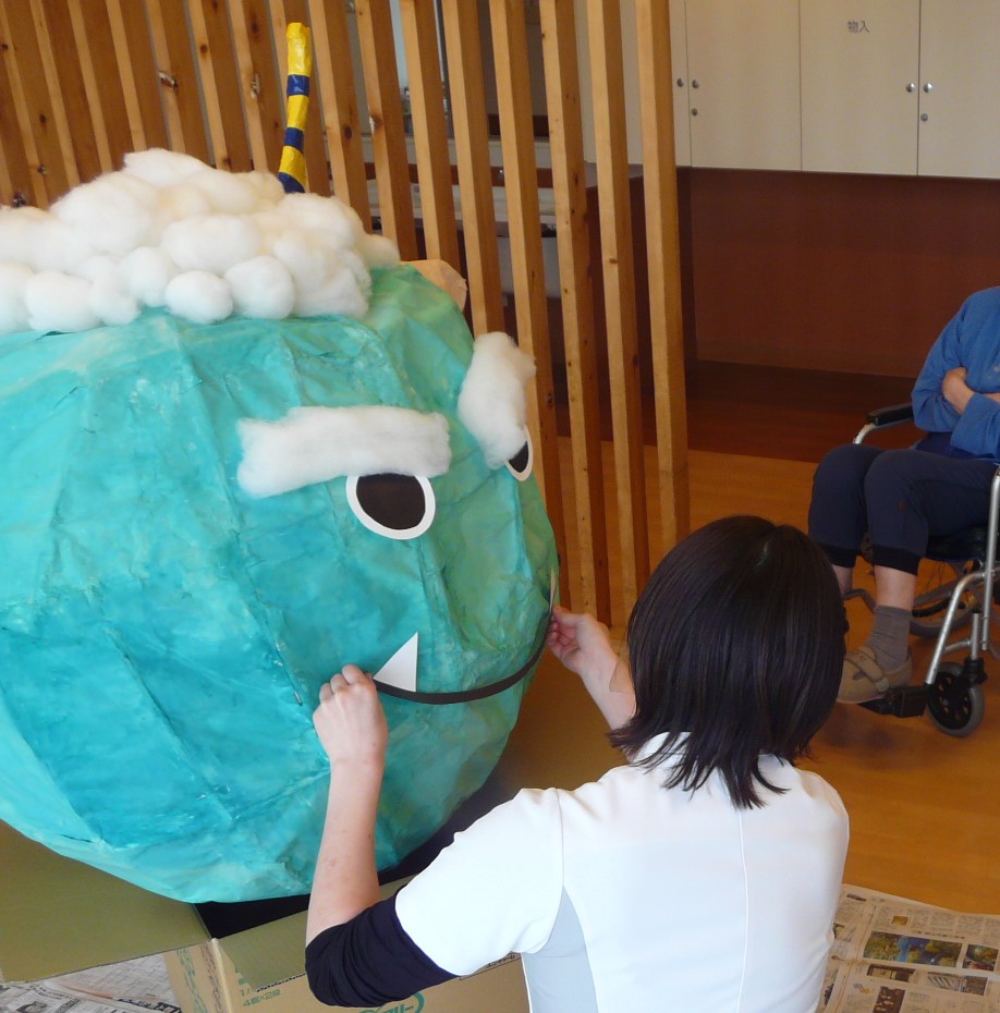 多くの方に見守られながら、チャーミングな鬼が完成し、記念撮影!