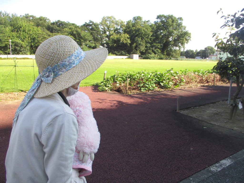 いい天気なので屋外でリハビリ中です。